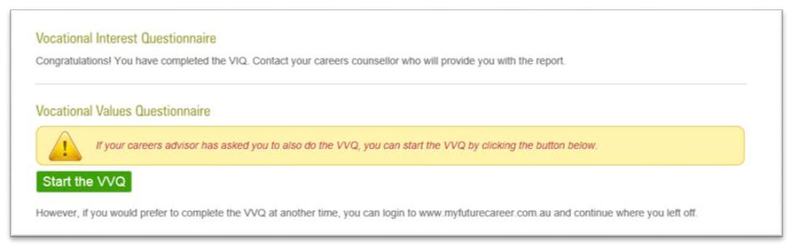 first via the normal process. As you can see from the picture below, once they finish the VIQ there is a green “Start the VVQ” button, which they should click to start the VVQ process. The next page has further instructions as shown below.